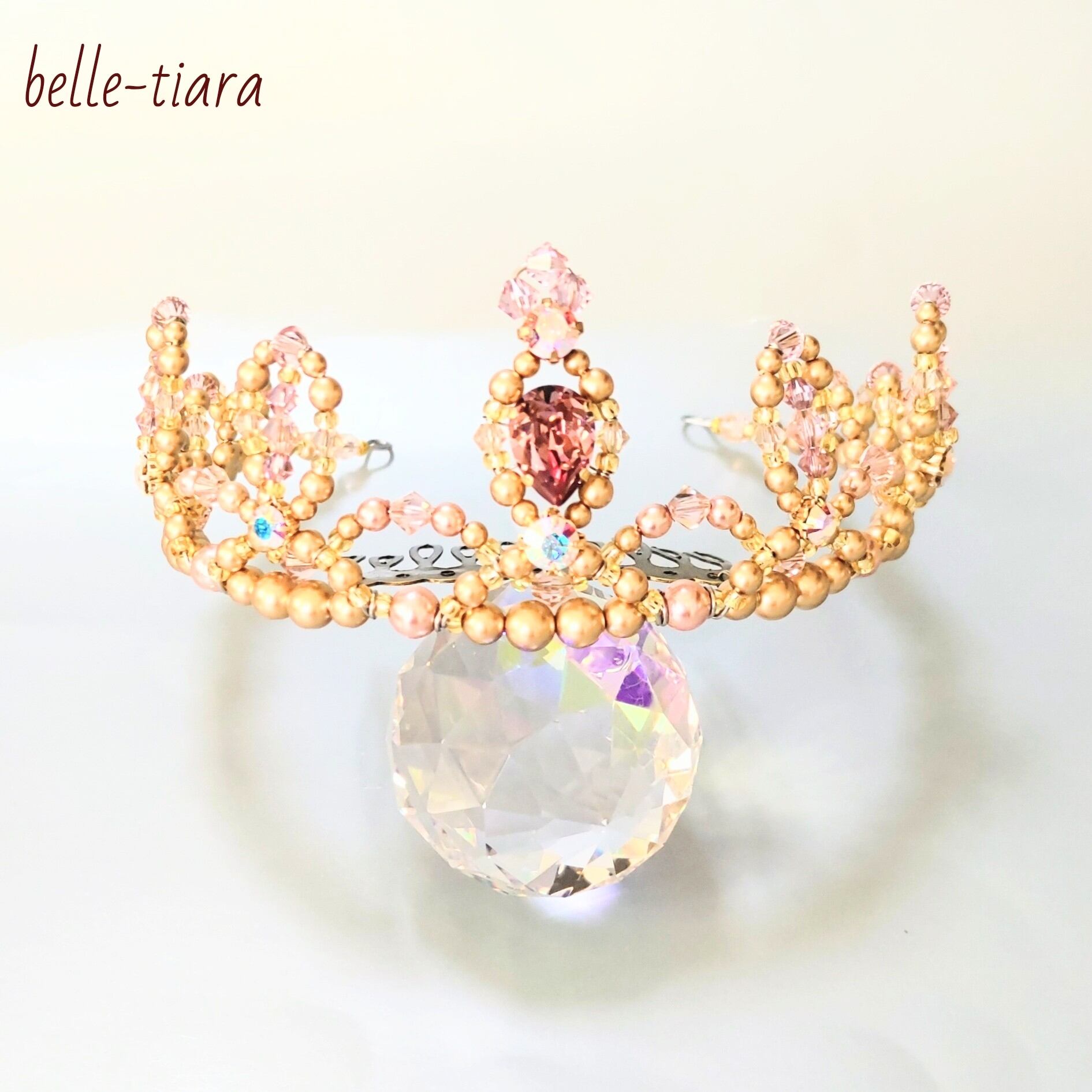 ゴールドパールをベースにくすみ系ピンクとパープルのスワロフスキーやクリスタルを使用して仕上げました。